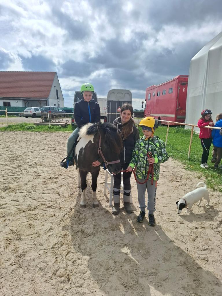 Žáci 2. a 3. ročníku ZŠ si prohlédli koníčky, někteří odvážní se i povozili.